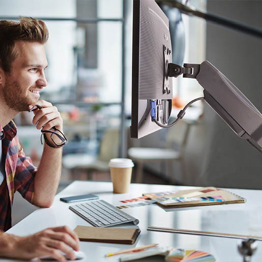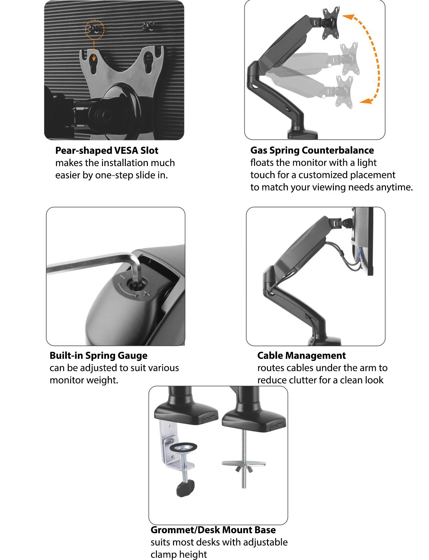 With the universally supported VESA hole mounting pattern, this desktop mount is easy to set-up and install. It is easy to adjust, with no tools required.